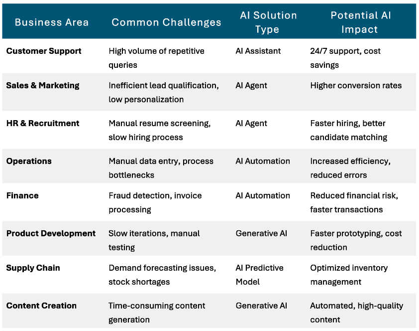 Many businesses struggle to identify the real issues that AI can effectively solve. AI isn’t a magic wand, it won’t fix everything, but it can be a powerful tool in the right hands. To unlock AI’s true value, you need to identify specific pain points and speed bumps and evaluate whether they are a good fit for AI-driven solutions.