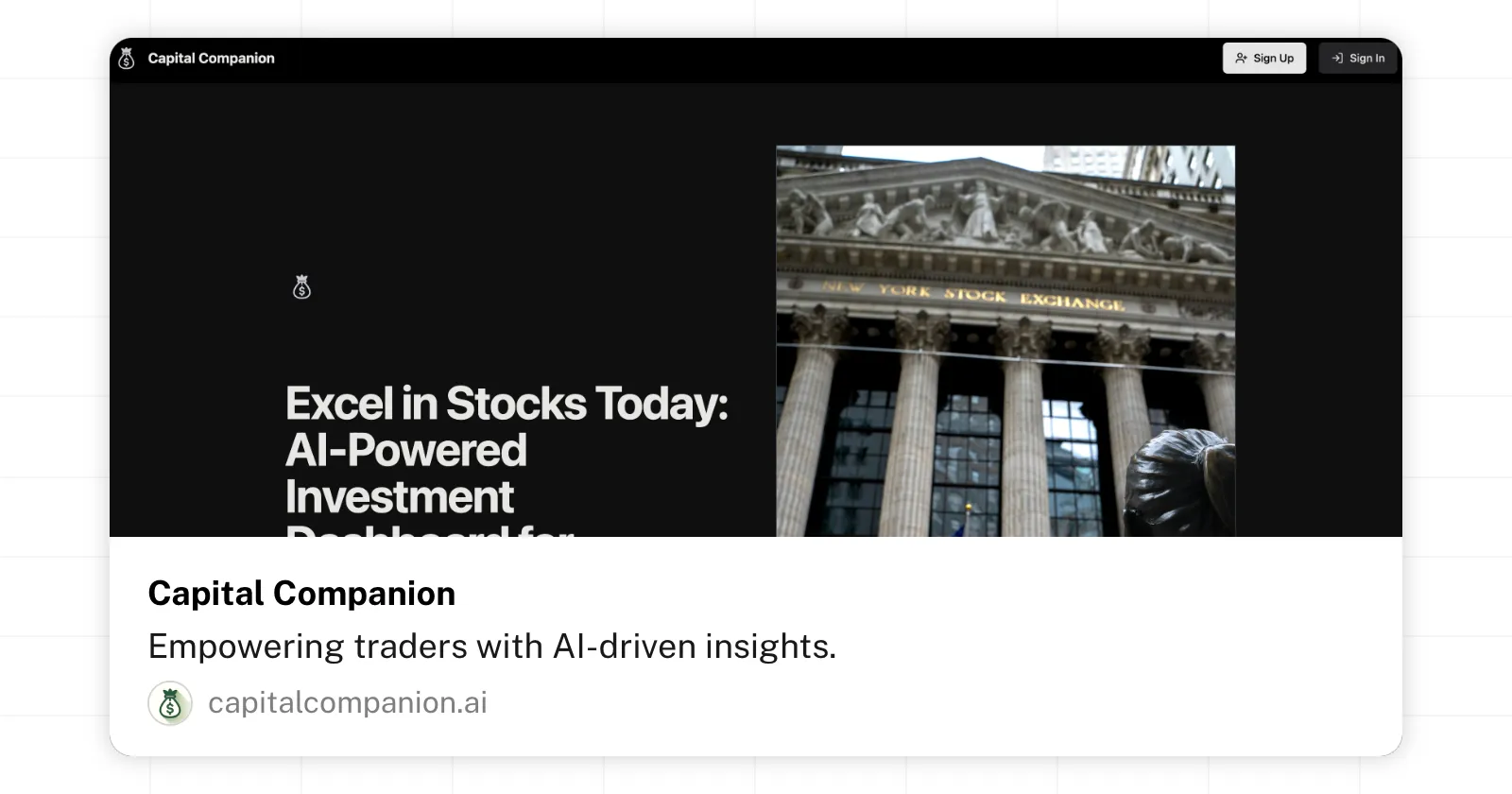 → Capital Companion is an advanced AI agent for trading that provides instant technical analysis, trend predictions, and market insights for US stocks, empowering traders with AI-powered decision support tools.