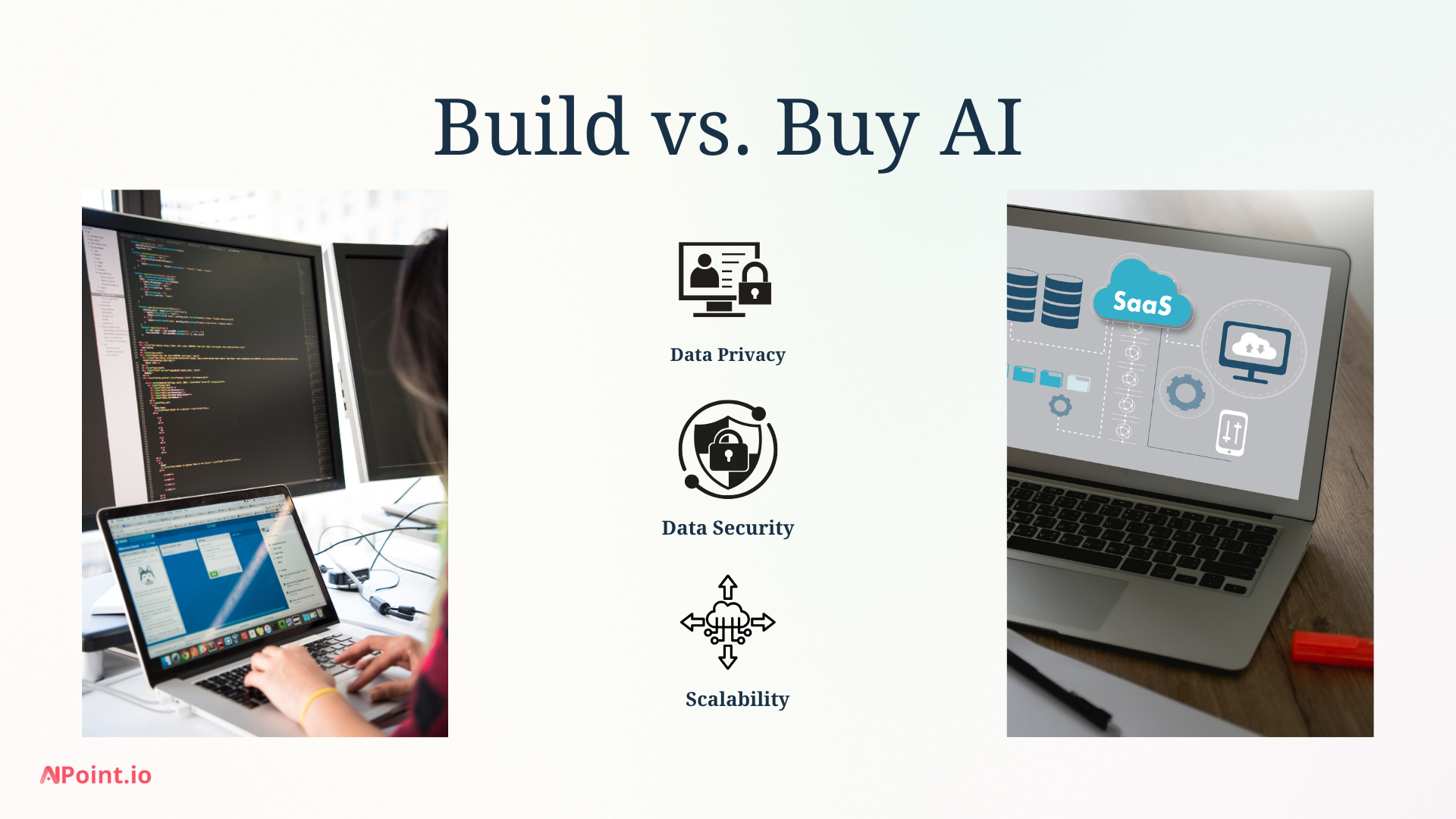 - Building AI allows you to keep sensitive data in-house, reducing exposure to third parties. However, you need to consider that internal security measures must be robust.