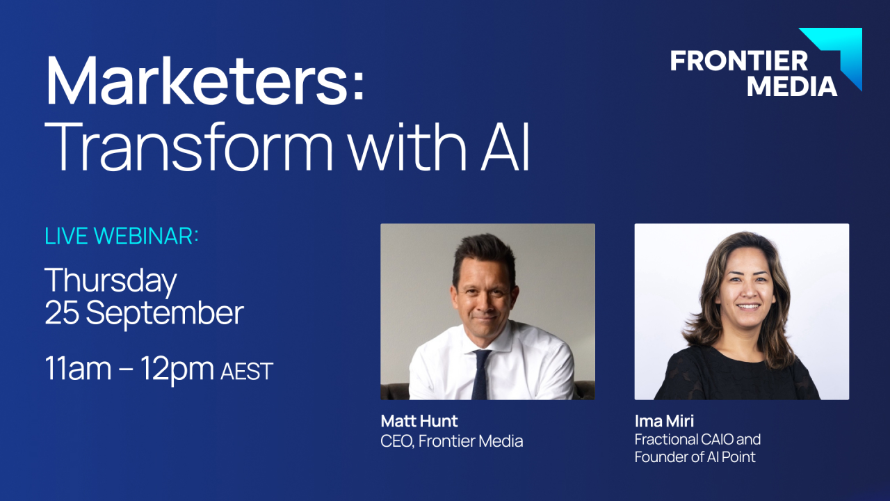 In this exclusive session in Sept 2025, hosted by Matt Hunt, CEO of Frontier Media, alongside Ima Miri, Founder at AI Point, we’ll cover: The fundamentals everyone should master (but most get wrong), Specific AI marketing tools that accelerate marketing performance, and The move from Gen AI into Agentic AI transformation. This is more than an “AI tools demo.” It’s about introducing a framework for reshaping marketing strategy for the next decade.